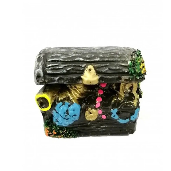 Enfeite Baú Decorado TremaO Enfeite Baú Decorado Trema é um produdo de resina de poliéster para uso submerso em aquários de água doce, material totalmente atóxico, pitura de alta durabilidade de compatível ao meio biológico.Seu aquário mais encantador e enriquecido de beleza, é a decoração que você estava procurando.Medidas aproximadaA: 06cm x L: 06cm x C: 8cm