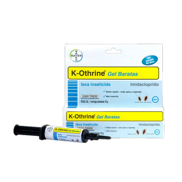 Inseticida K-Othrine BaratasO Inseticida K-Othrine Baratas é um inseticida em gel indicado tanto para o combate às baratas grandes (de esgoto), como para as populares baratas de cozinha (também chamadas de francesinhas ou paulistinhas).A importância de combater baratas com o inseticidaVocê sabia que as baratas são insetos que possuem uma alta capacidade de reprodução? Uma barata fêmea pode colocar, ao longo de sua vida, de quatro até oito ootecas, onde são guardados de 30 a 40 ovos.Como a proliferação das baratas ocorre de forma muito facilitada e elas podem se esconder próximo às fontes de alimentos, é muito importante combatê-las o mais rápido possível. Por isso, o inseticida K-Othrine baratas deve ser aplicado em locais estratégicos.Onde podemos aplicar o K-Othrine para baratas?O K-Othrine para baratas é ideal para diversas situações, já que possui uma ótima aderência nas mais diferentes superfícies. Além disso, o produto não possui cheiro, não mancha e também é bem prático.Tudo isso faz com que o inseticida seja ótimo para frestas, vãos, fendas, rodapés e também em armários de cozinha, em fogões e embaixo de geladeiras. E o melhor, com efeito rápido, pois, mata a barata logo após a ingestão do produto.Modo de uso:Para utilizar seu inseticida K-Othrine para barata, são necessários apenas alguns passos. Antes de tudo, você deve retirar o lacre que fica no bico da seringa e pressionar o produto para aplicar algumas gotas nas áreas estratégicas.A recomendação é para que você aplique 1 gota por m² para áreas de baixa infestação, 2 gotas por m² para médias infestações e 3 gotas por m² para as áreas de alta infestação. E lembre-se, o produto não deve ser aplicado sobre quaisquer utensílios de cozinha e alimentos.K-Othrine para baratas com preço especialNinguém quer ser obrigado a conviver com baratas por muito tempo em suas casas. Por isso, na , você encontra o K-Othrine baratas com preço vantajoso para cuidar da sua família e da sua casa.E na não tem só medicamentos para combater insetos, como o K-Othrine para baratas. Aqui, você também encontra produtos para a saúde do seu pet, rações de diversas marcas e também muitos brinquedos para fazer o dia a dia do seu animal ainda mais feliz.