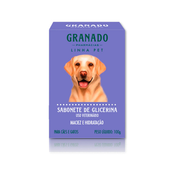 Sabonete de Glicerina Granado Pet 90g Maciez e Hidratação Indicações:O Sabonete de Glicerina é formulado com base vegetal que limpa suavemente e deixa os pelos sedosos e hidratados. Ideal para cães e gatos. Modo de uso:Ensaboe a pelagem molhada massageando até produzir espuma. Enxague em seguida. Precauções:Conservar em temperatura ambiente, ao abrigo da luz direta, fora do alcance de crianças e animais domésticos.Esse produto não deve entrar em contato com os olhos do animal. Caso isto ocorra lave com água abundante. Se a irritação persistir procure imediatamente um médico veterinário.  Composição:Massa Vegetal Glicerinada, Sacarose, Fragrância, Glicerina Vegetal, CI 19140, CI 15510.Produzido sem gordura animal. Conteúdo da embalagem:1 x 90g Sabonete de Glicerina Granado Pet