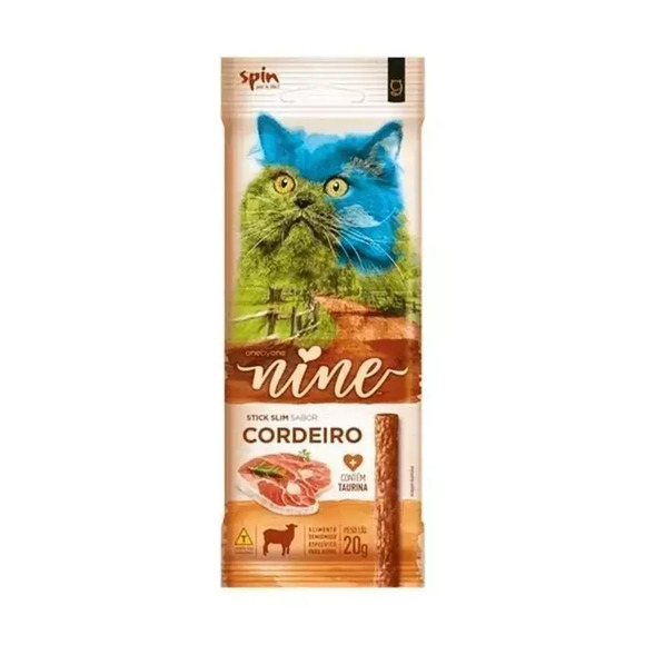 DESCRIÇÃO O Stick Nine cat da Spin Pet são petiscos saborosos desenvolvidos especificamente para gatos, seu uso é indicado como agrado para demonstrar afeto. É um complemento alimentar, por isso deve ser oferecido por bom comportamento, adestramentos ou como sobremesa. 2 Composição Miúdos bovinos, carne mecanicamente separada de aves, miudos de cordeiro, proteína de soja, glicerina, glicose, amido, aditivo palatabilizante, cloreto de sódio(sal comum), aroma artificial de morango, sorbato de potássio, glutamato monossódico, ácido cítrico e taurina. Curiosidades 7 ou 9? Todos sabem que um gato tem apenas uma vida. Mas existe um mito que diz que ele teria 9 vidas. Os egípcios acreditavam na Enéade, um grupo formado por 9 divindades. Acreditavam ainda que, quando esses deuses circulavam pelo mundo inferior, assumiam sempre a forma de um gato. É com esta inspiração que a Spin Pet lança a nova marca Nine Cat, uma seleção de produtos especialmente desenvolvida para estes seres tão especiais. Especificações Indicação Gatos. Raça Todas as raças Idade Adultos, idosos Marca Spin Pet