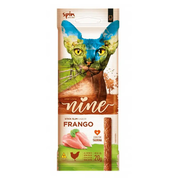 DESCRIÇÃO  O Stick Nine cat da Spin Pet são petiscos saborosos desenvolvidos especificamente para gatos, seu uso é indicado como agrado para demonstrar afeto. É um complemento alimentar, por isso deve ser oferecido por bom comportamento, adestramentos ou como sobremesa.  2 Composição  Miúdos bovinos, carne mecanicamente separada de aves, proteína de soja, glicerina, glicose, amido, aditivo palatabilizante, cloreto de sódio(sal comum), aroma artificial de morango, sorbato de potássio, glutamato monossódico, ácido cítrico e taurina.   Curiosidades  7 ou 9? Todos sabem que um gato tem apenas uma vida. Mas existe um mito que diz que ele teria 9 vidas. Os egípcios acreditavam na Enéade, um grupo formado por 9 divindades.  Acreditavam ainda que, quando esses deuses circulavam pelo mundo inferior, assumiam sempre a forma de um gato. É com esta inspiração que a Spin Pet lança a nova marca Nine Cat, uma seleção de produtos especialmente desenvolvida para estes seres tão especiais.   Especificações Indicação           Gatos.          Raça                   Todas as raças Idade                  Adultos, idosos            Marca                 Spin Pet